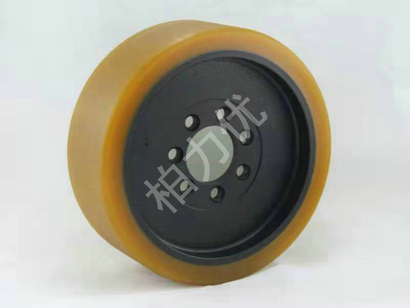聚氨酯驱动轮总成为轮子和安装轮毂为一体的产品,总成部分包括轮毂在内,一般聚氨酯驱动轮总成是叉车轮胎驱动轮,轮毂为球墨铸件,铸件内部留法兰孔便于与电机安装,聚氨酯驱动轮有在前移式电动叉车、堆高车使用,驱动轮作为驱动作用,轮子对于各种路面要适合,因此一般情况下,聚氨酯驱动轮材质也是以MDI和NDI为主要材料,表面硬度在95邵氏A之间